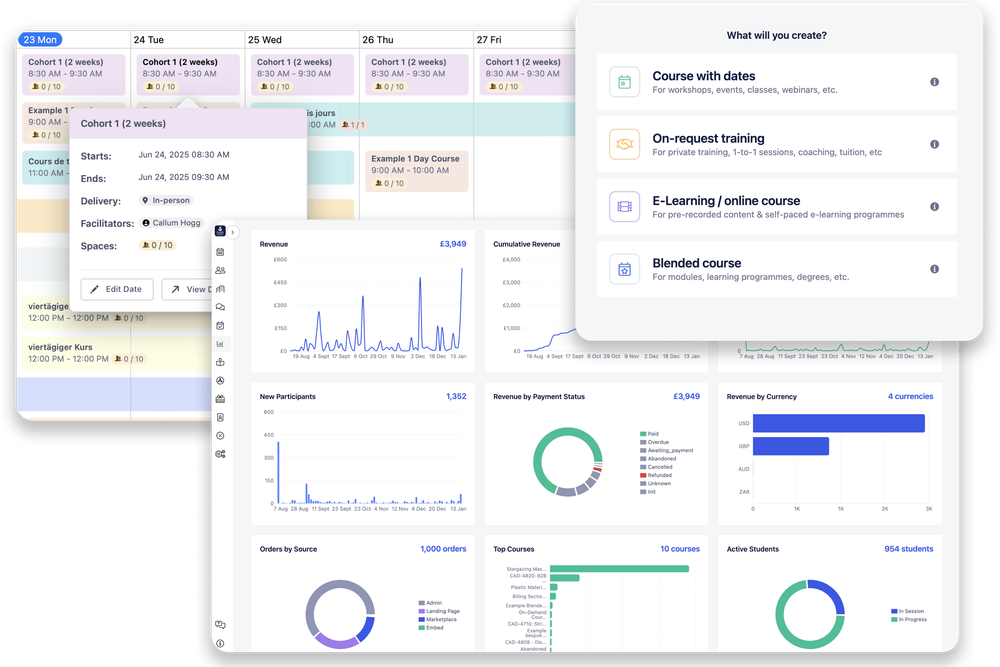 Whether you deliver in-person workshops, online sessions, blended courses, or self-paced learning - Cademy keeps your operations, learners, and progress data in perfect sync.