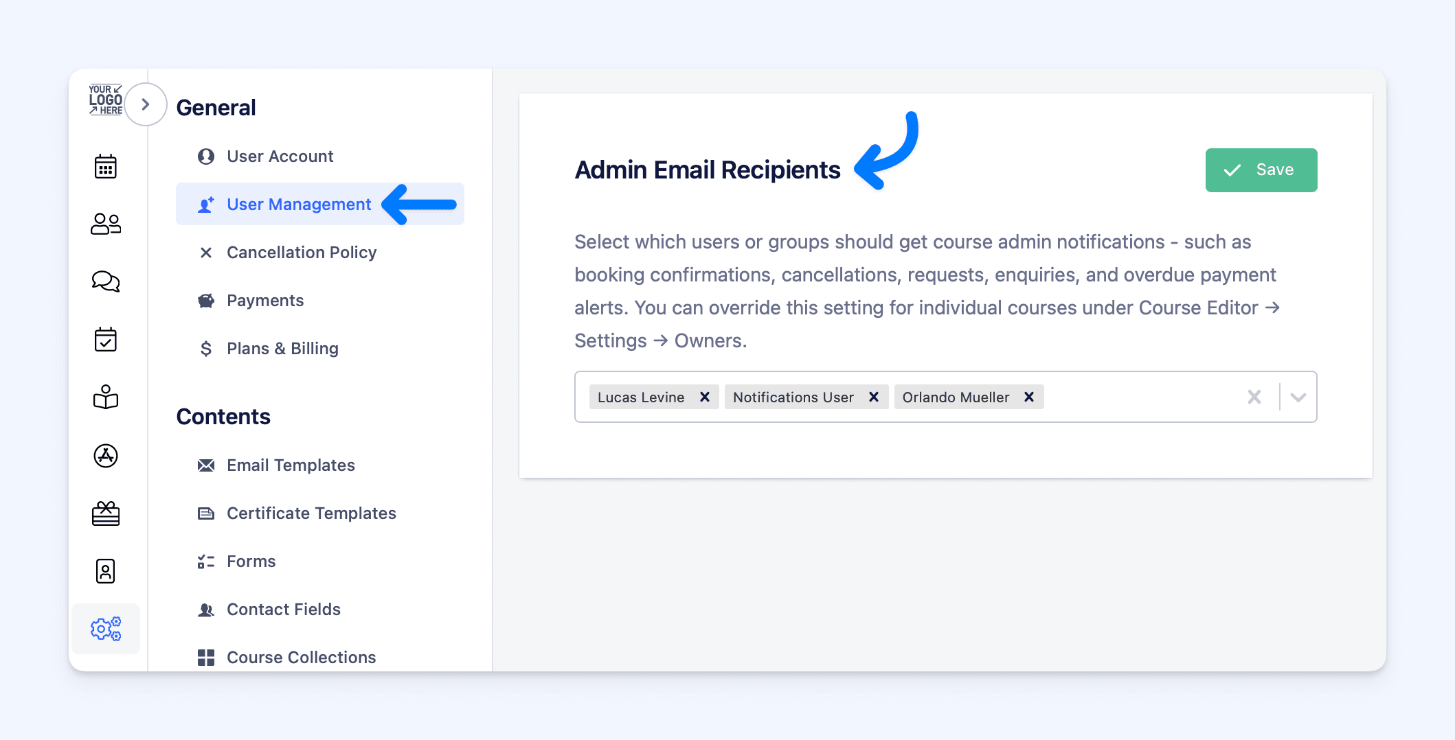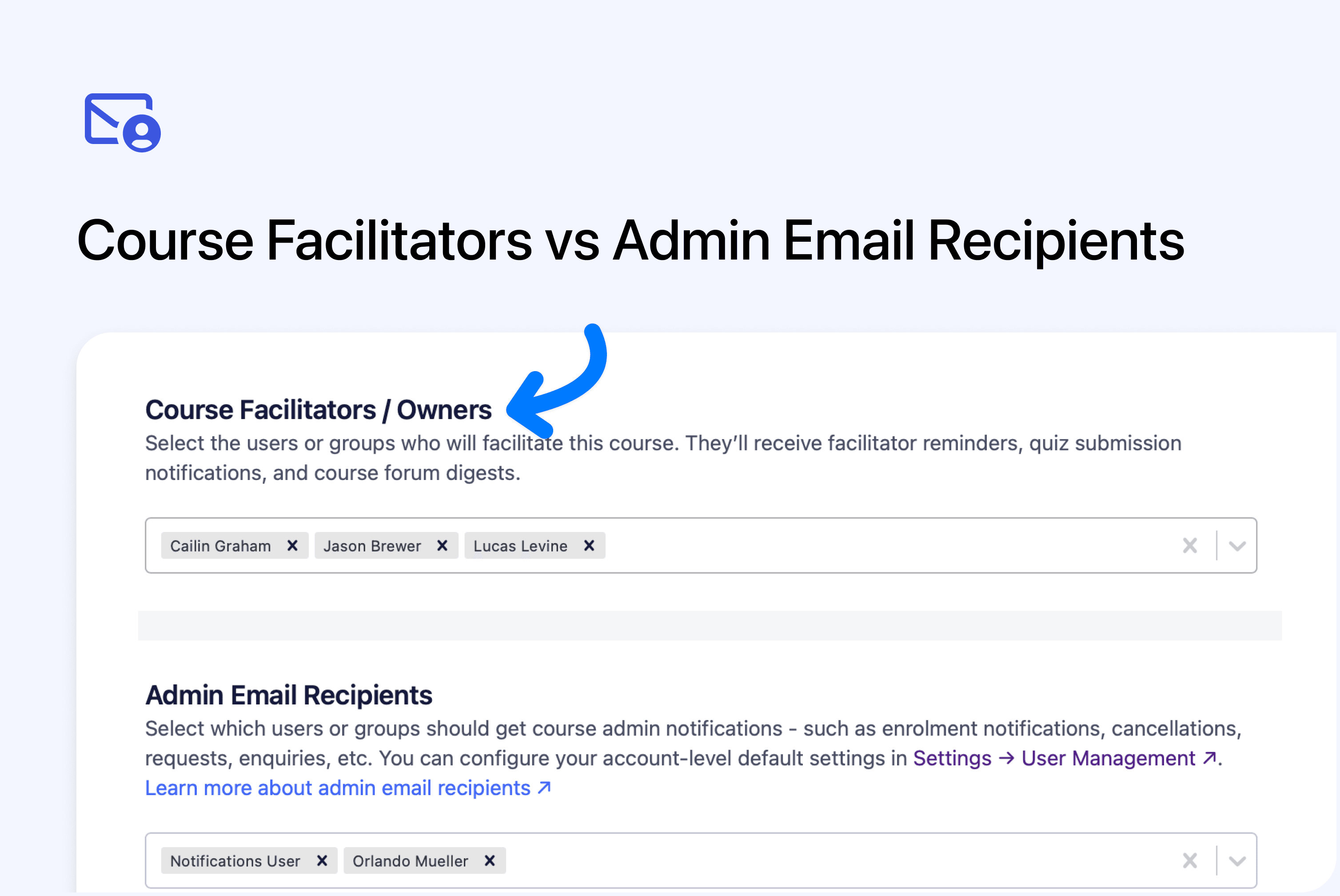 - Set per course: Course Editor ā Settings ā Course Owners ā Admin Email Recipients