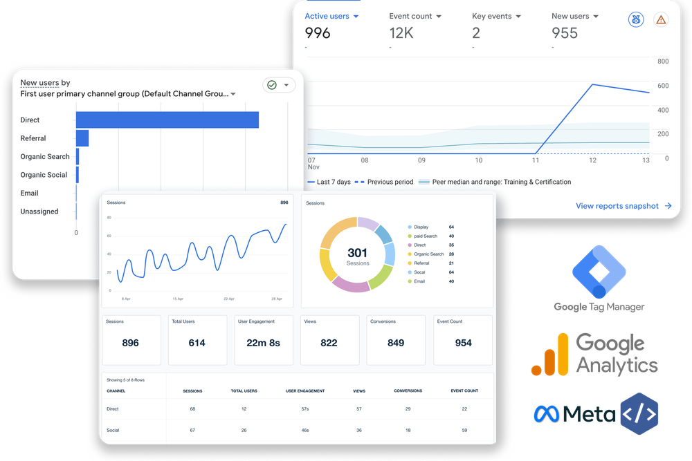 Built-in support for Google Analytics 4, Google Tag Manager, and the Meta Pixel means you can track engagement and conversions from course listings to checkout — no code required.