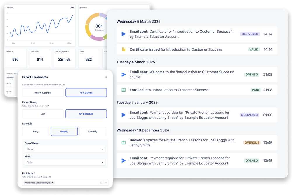 Get real-time visibility into attendance, revenue, course performance, and utilisation.