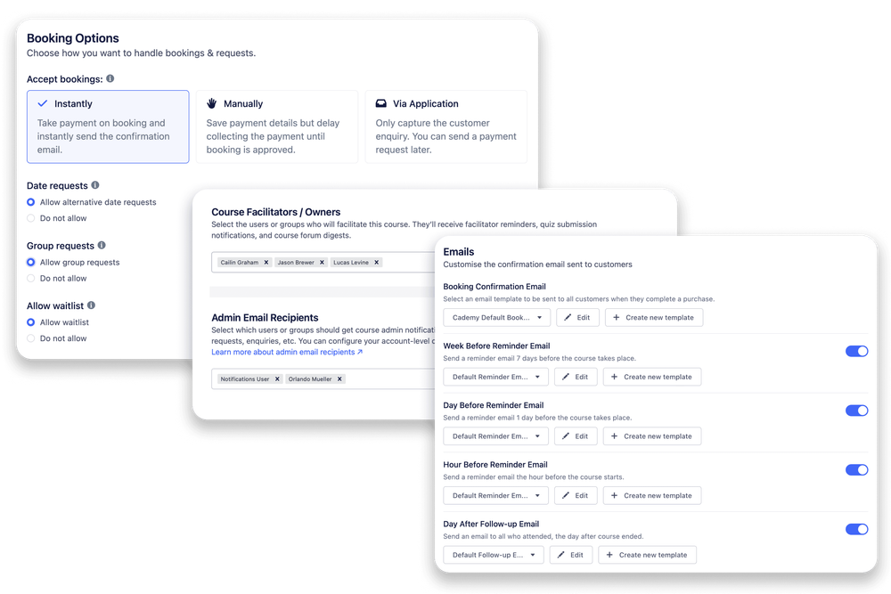 Facilitators receive automated reminders and calendar updates, reducing admin and keeping delivery on schedule.