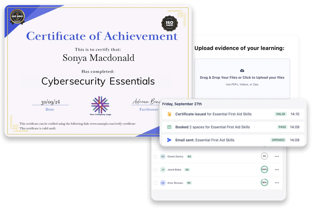 Issue branded certificates instantly for every learner. Track expiries and send renewal reminders without manual follow-up.